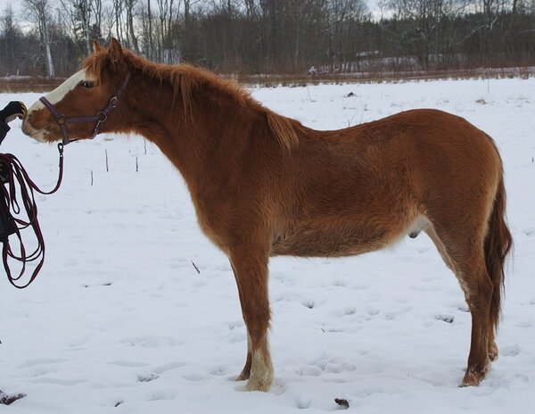 Ema: Voore Relli on sündinud 2014.a, kollane mära, tk.146cm, kergema tüübiga ja avara, elastse ning ülesmäge liikumisega.